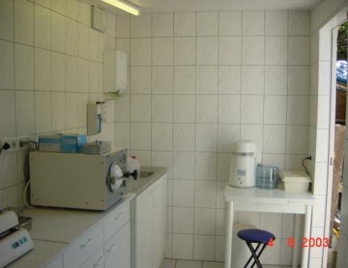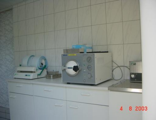 Unser Sterilisationsraum ist, genauso wie unser Arbeitsbereich, komplett gefliest! Die Schränke, ebenso die Arbeitsfläche sind wischfest zu desinfizieren!! Zur Ausstattung bzw. zur Einrichtung gehören: der Waschplatz, für das Aufbereiten und reinigen des Werkzeuges, der Dampfsterilisator /oder Autoklav einen Wasseraufbereiter für den Autoklav, das Folieneinschweißgerät für die Steripacks, das Ultraschall-Reinigungsgerät, und natürlich auch eine Instrumentenwanne, etc... | |||||||||||||||||||||||||||||||||||||||||||||||||||||||||||||||||||||||